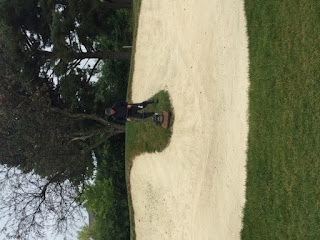 bunkers have steep faces to make shots more difficult. Juan is mowing what we